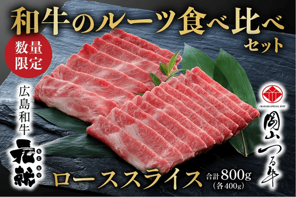おかやま和牛肉の中でも厳選された逸品和牛「岡山つる牛」と広島県が誇る和牛「元就(もとなり)」とのローススライスを詰め合わせました。元就、岡山つる牛共に、日本最古のつる牛から受け継がれた優秀な血統です。それぞれの美味しさを心ゆくまでご堪能ください。