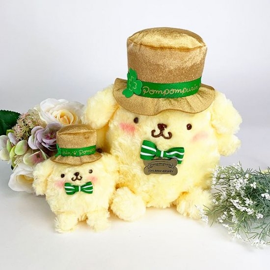 速報 新商品発売開始 おめかししたポムポムプリンと25周年をお祝いしよう♪ゴールドハットやチャーム付きのふわふわぬいぐるみ