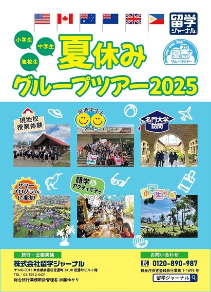 雑誌『留学ジャーナル』の発行や留学総合コンサルティング事業を手がける、株式会社留学ジャーナル(本社:東京都新宿区、代表取締役社長:塚田 俊文)は、小学生・中学生・高校生を対象とした「2025年夏休み短期留学」全37コースの申込受付を3/12(水)より開始します。無料のデジタルパンフレットの請求も可能で、ホームページ上から直接申込みもできます。