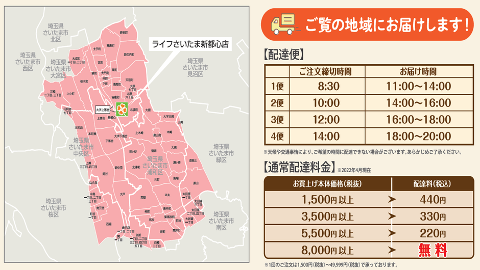 “おいしい” “ワクワク” “ハッピー” をお届けするライフコーポレーションは、2月12日(水)から「さいたま新都心店」でライフネットスーパーのサービスを開始しました。