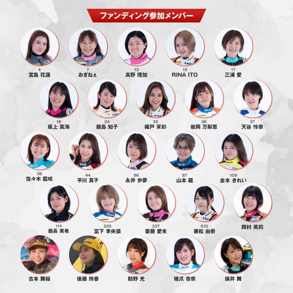 2年目となる今年は、KYOJO CUPの目標の一つである「女性ドライバーを一つの職業として確立させること」をかなえるための第一歩として、競争女子一人一人のことをもっとたくさんの方に、深く知っていただくことを目的としたファンディング企画を実施します。