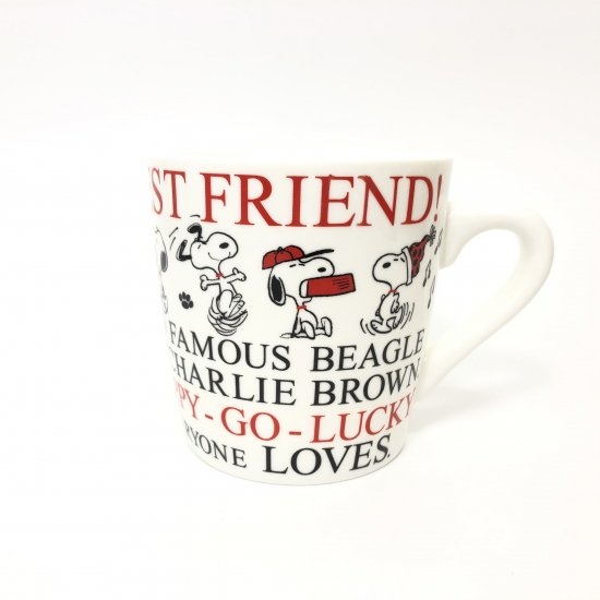 様々な表情のスヌーピーがプリントされています。スヌーピー好きにはたまらないマグカップなこと間違いなしです♪飲み口は、直径9×底:直径7×9cmです。