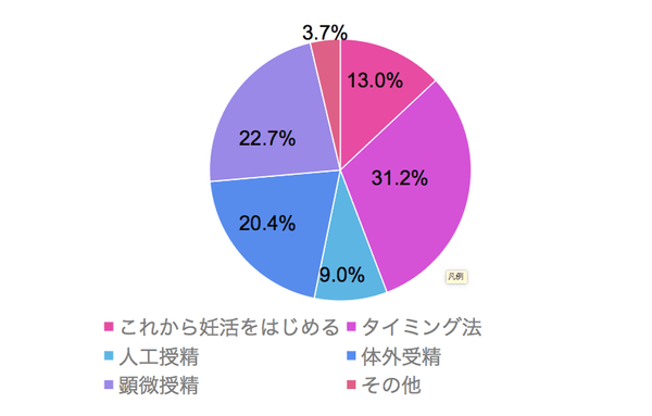 ・これから妊活をはじめる 13.0% ・タイミング法 31.2% ・人工授精 9.0%