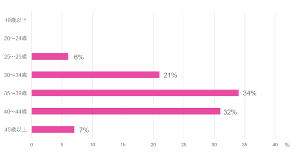 ・24歳以下 0% ・25〜29歳 6% ・30〜34歳 21% ・35〜39歳 34%