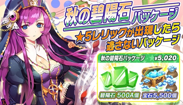 ★5のレリックもすぐに購入可能な碧陽石のパッケージです。装備中のレリックが物足りないと感じたら、是非このパッケージを利用して更新しましょう!