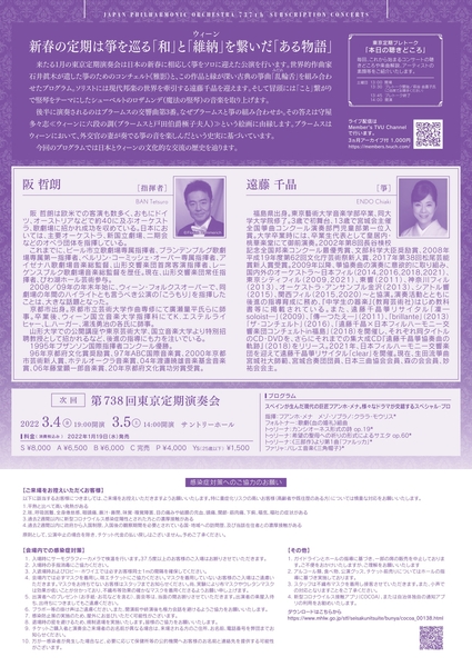 【第2弾】第737回東京定期演奏会(2022年1月14日(金)/15日(土)) サントリーホール