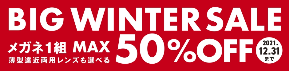 主なキャンペーン内容:メガネ1組 最大50%OFF(30%・50%OFF )