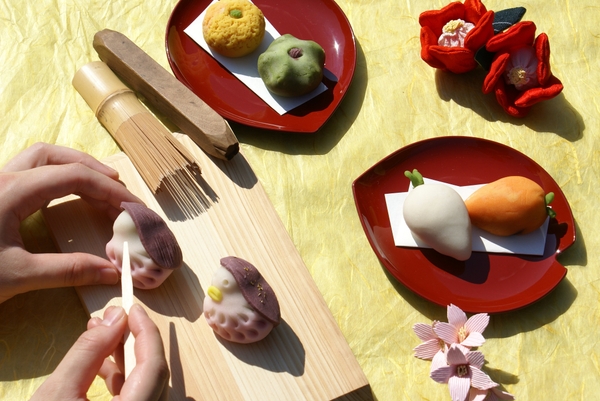 ・地元和菓子職人の手ほどきを受けながら客室で和菓子作り