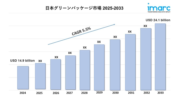 日本のグリーン包装市場規模は、2024年にUSD 149億で評価されました。今後、IMARC Groupは同市場が2033年までにUSD 241億に達し、2025年から2033年の間に年平均成長率(CAGR)5.5%を示すと予測しています。