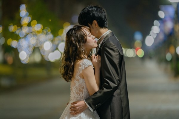 空気が澄みわたり、ライトアップの光の粒がくっきりと見える冬は、夜景撮影のベストシーズン。きらきらとロマンチックな結婚写真を撮影することができます。