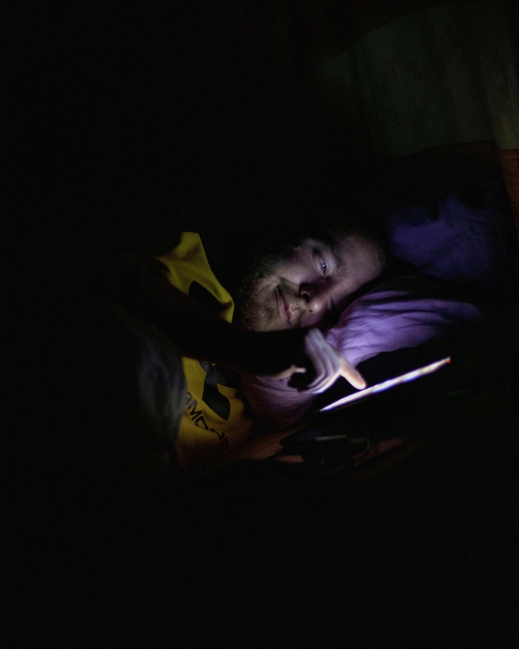 マッチングアプリで知り合った女性と地下壕でチャットする兵士レックス(2022年9月、ルーチ)
