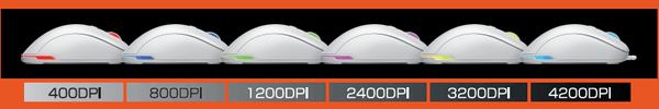 本製品は、DPI変更時、各DPIの決まった色で約5秒間点灯します。