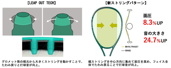 ■「LEAP OUT TECH+新ストリングパターン」でたわみ戻りと打球音が向上