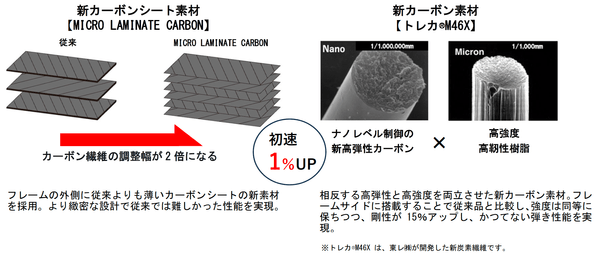■「MICRO LAMINATE CARBON+トレカ®M46X※」で高い弾き性能とマイルドな打球感を実現