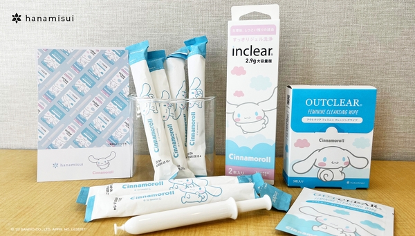 腟洗浄器のインクリアでおなじみの株式会社ハナミスイが20周年を記念して、シナモロールと夢のコラボ商品を新発売!