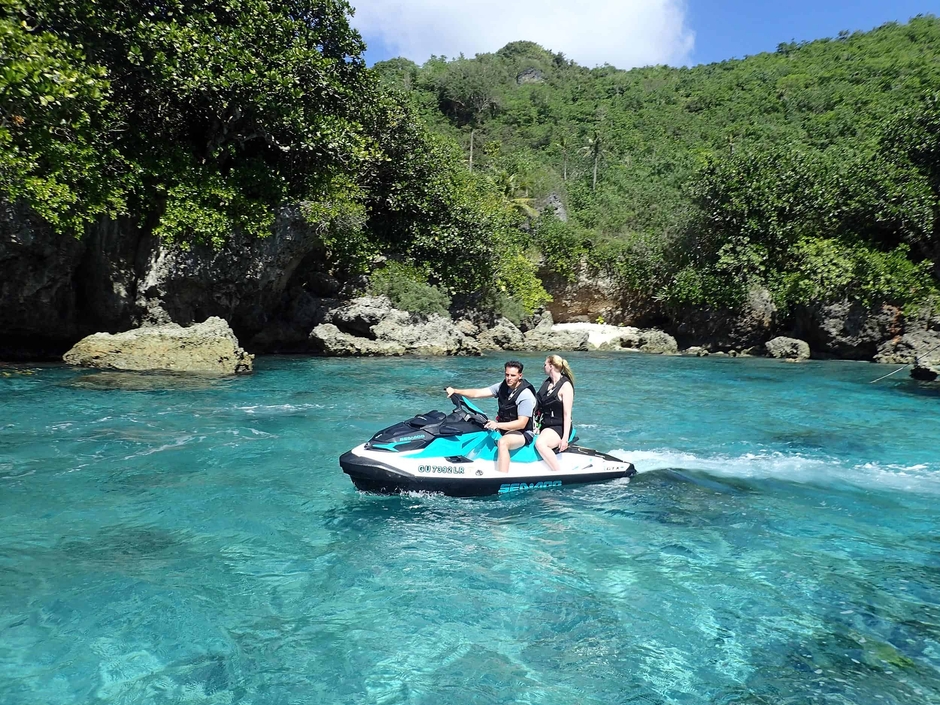 島内にはマリンアクティビティだけでなく、海越えホールのあるゴルフ場など豊かな自然を生かした体験ができます。秘密のラグーンまでジェットスキーで向かうプランは、迫力のある北西海外線沿いの崖を見ながら、爽快に海を駆け抜けます。運がよければイルカの群れにも出会うことができます。