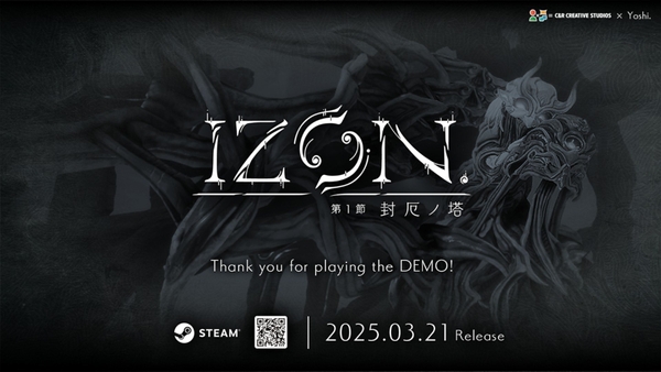 株式会社クリーク・アンド・リバー社(以下C&R社)が運営する日本最大級のクリエイティブ開発スタジオ「C&R Creative Studios」のゲーム部門は、造形作家Yoshi.氏と共同で、同氏が手がけるカプセルトイ「紡ギ箱」シリーズのゲーム『IZON. 第1節 封厄ノ塔』(以下『IZON.』)を開発し、本日3月21日(金)より、オンラインゲーミングプラットフォーム「Steam」で販売開始いたしました。また、本日から1週間、35%OFFの特別価格でお買い求めいただける発売記念セールを実施いたします。