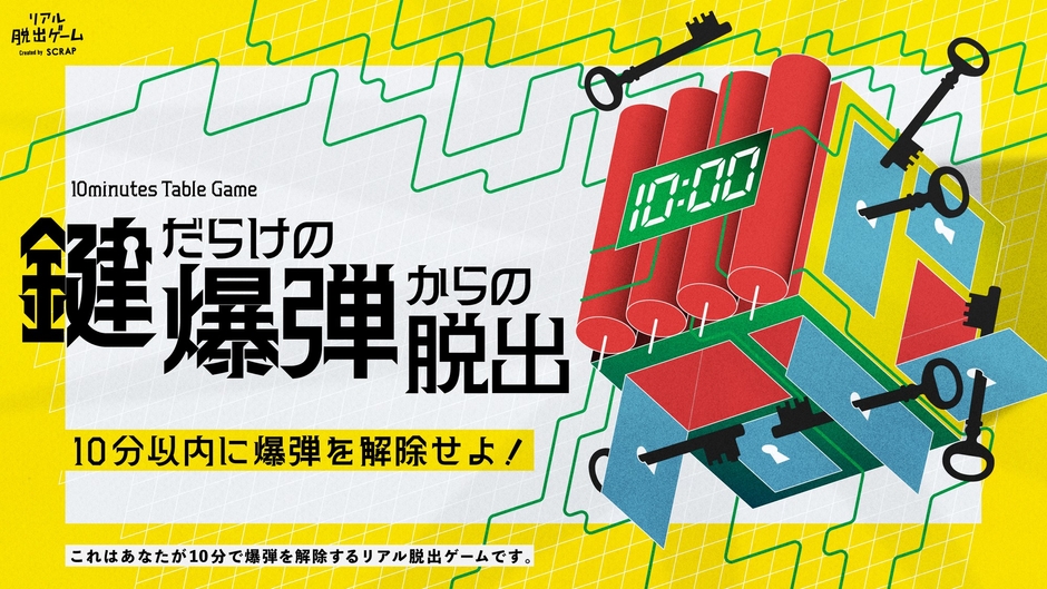 全世界で累計1,500万人以上を動員しているリアル脱出ゲームを企画制作する株式会社SCRAP(本社:東京都渋谷区、代表:加藤隆生)は、「リアル脱出ゲーム CROSSING 渋谷店」(東京都渋谷区宇田川町)にて2026年1月29日(木)よりスタートする新作リアル脱出ゲームの3作目として、リアル脱出ゲーム『10minutes Table Game 鍵だらけの爆弾からの脱出』の開催を発表します。