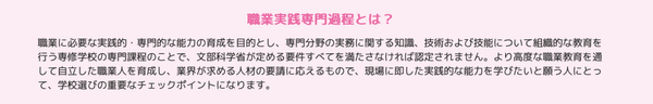 また、専門学校は、学校教育法124条に定められている通り、