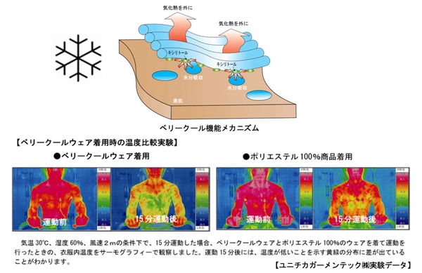 水分に反応して熱を吸収する植物由来キシリトールを、ヨネックスは業界で初めて生地に採用。衣服内温度を約-3℃低く保つクーリング効果で、涼しく快適に保ちます。2000年からヨネックスのスポーツウェアに幅広く採用しており、バドミントン日本代表チーム、テニス選手らのタイトル獲得に貢献し、高い信頼を得ています。