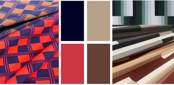 フランスのインテリアやファブリックからグラフィックやカラーを選び、ダイヤ柄とストライプ柄で表現。トレンドは押さえつつも上品でシックな仕上がりとなっています。