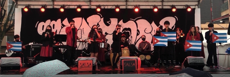こんにちは!東京外国語大学サルサ研究会です。サルサとは、キューバで生まれニューヨークで育ったラテン音楽です。コンガやボンゴといった独自の打楽器の他、ピアノ、ボーカル、管楽器など、たくさんの音が混ざり合った演奏が特徴的です。リズミカルな曲調ですので、ぜひ体を揺らして楽しんでいただけると嬉しいです!