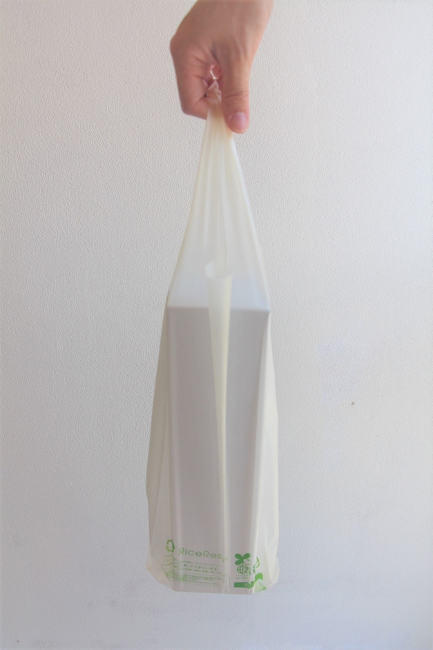 SDGsの取り組みとして、地球にやさしい「コメから作ったレジ袋」を使用開始