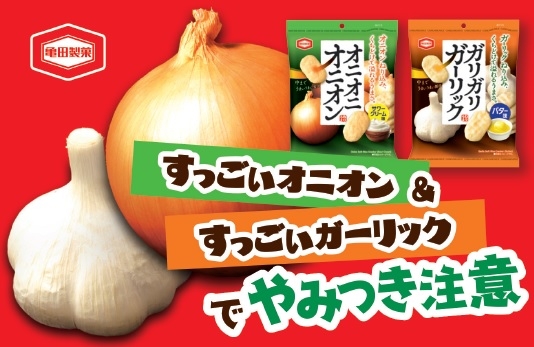 亀田製菓株式会社(本社:新潟県新潟市、代表取締役社長 COO:髙木 政紀)は、『46g オニオニオニオン サワークリーム味』(以下:『オニオニオニオン サワークリーム味』)、『46g ガリガリガーリック バター味』(以下:『ガリガリガーリック バター味』)を、3月20日(月)から関東地方の一部スーパーマーケットにて先行発売します。