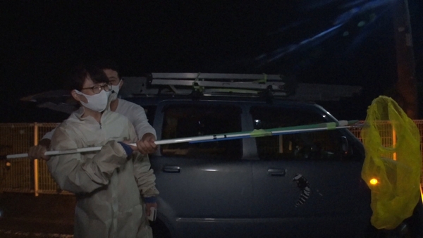 午後7時。再び民家を訪れた2人。千沙都さんが駆除依頼の電話対応や周辺の警備などをする中、周士さんが1匹も逃がすことなく駆除終了。しかも所要時間は1分足らずという素早さ!果たしてどのように駆除をしたのでしょう?シンプルすぎる方法に注目です!