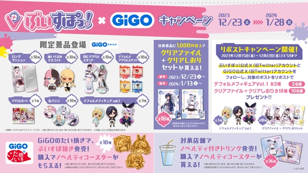 株式会社GENDA GiGO Entertainment(本社:東京都港区 代表取締役社長:二宮 一浩 以下、当社)は、2023年12月23日(土)よりGiGOグループの店舗で次世代 Virtual esports プロジェクト『ぶいすぽっ!』とタイアップした「ぶいすぽっ!×GiGOグループのお店キャンペーン」を開催いたします。