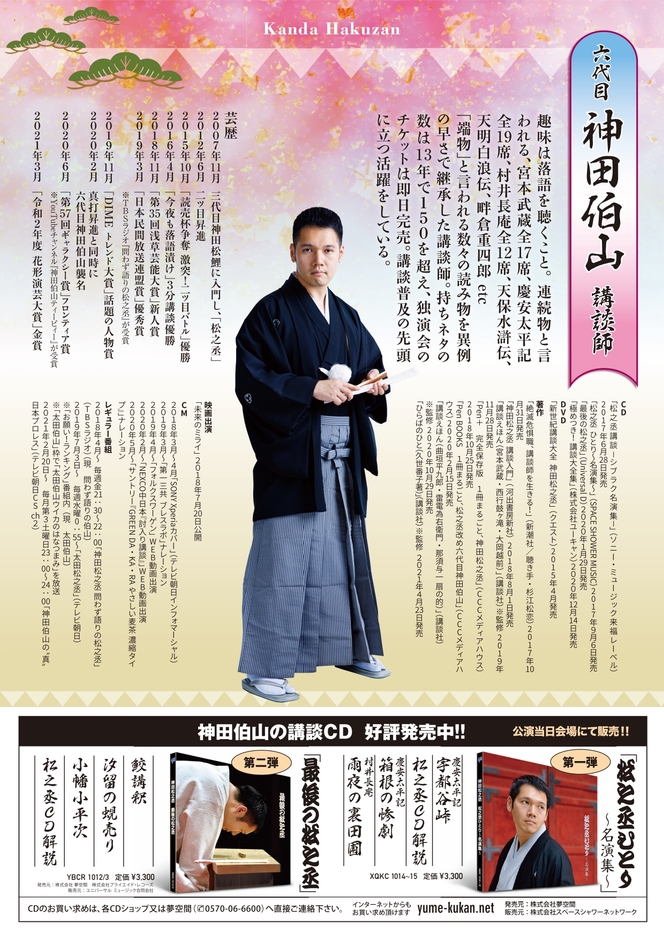 出演 :神田伯山 神田松鯉 神田阿久鯉 三遊亭遊雀 蜃気楼龍玉