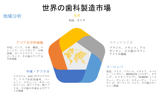 人口の高齢化、革新的な歯科施設へのアクセス、歯科観光の急増、世界的な経済成長により、歯科製造市場の成長が加速すると予想されます。デジタルテクノロジーと人工知能の導入は、歯科医の診療を直接改善し、患者の体験を向上させるため、すでに有用であることが証明されています。歯科製造市場は、主に審美歯科および審美歯科に対する需要の急増、および従来の歯科よりも長く続く可能性のある痛みの少ない手順により、将来的に高い成長を遂げると推定されると予測されます。