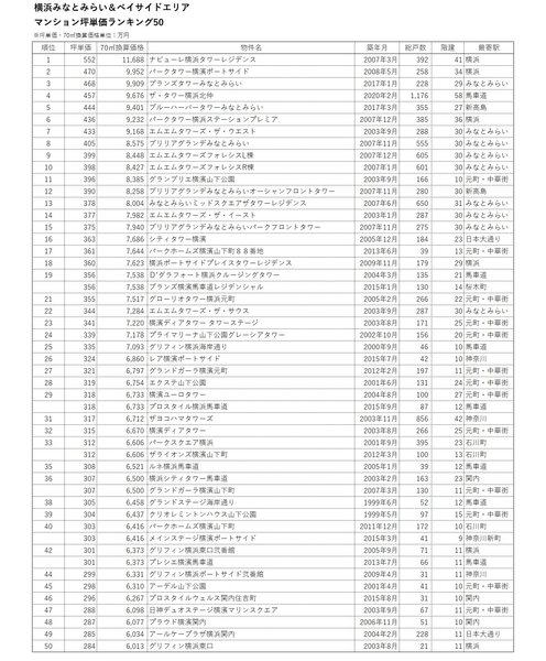 【みなとみらい&ベイエリア マンション坪単価ランキング50】