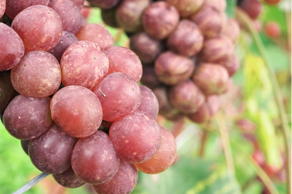 赤紫色の大きめの粒に白い縞模様が美しく、また、独特の華やかな香りと味わいで地元では昔から愛されている品種です。