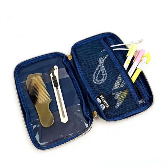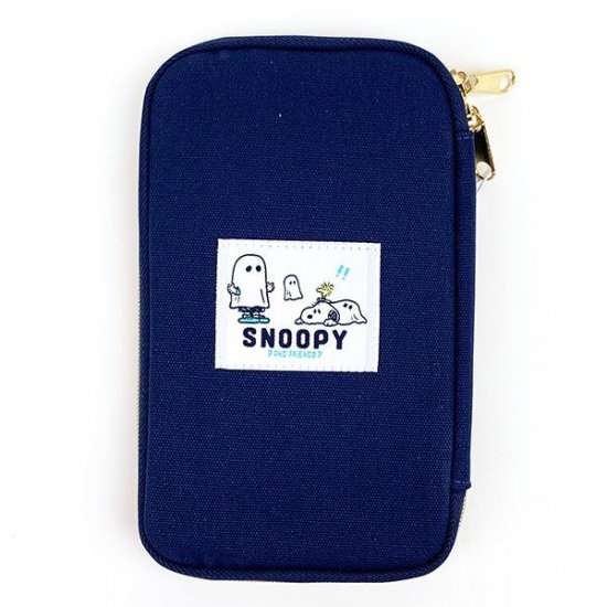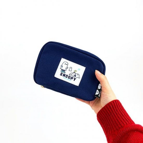 スヌーピーのおばけシリーズから、ポーチ類のご紹介ですネイビーやグレーのシックな本体に、おばけごっこをしているスヌーピーやチャーリーブラウンのキュートなタグがデザインされたアイテム。それもファスナーの開き具合が絶妙で、使いやすさ満点♪