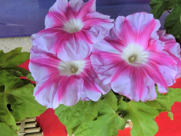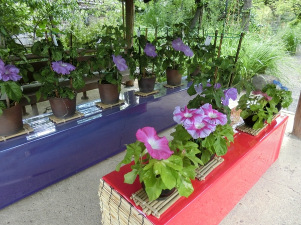 【向島百花園】江戸の夏の風物詩「大輪朝顔」 の展示を紹介しています