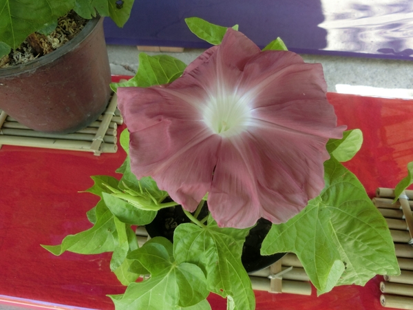 向島百花園では、8月1日(日)まで9時の開園から12時頃の間、墨田朝顔愛好会の方々が仕立てた 大輪朝顔 の展示し、Twitter・HPにて公開しております。色も形も様々な江戸園芸の朝顔をお楽しみください。(入園には事前予約が必要です。)
