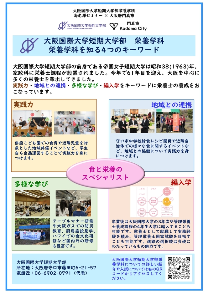 官学連携「”食”をとおした地域とのつながり」の発表 大阪国際大学短期大学部 栄養学科 海老澤セミナー
