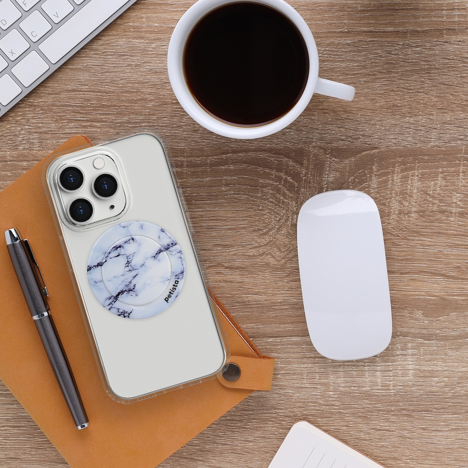 カラーは、MagSafeタイプがベージュやグレーなどの4色、粘着タイプがさらに大理石柄を加えた8色の合計12色。