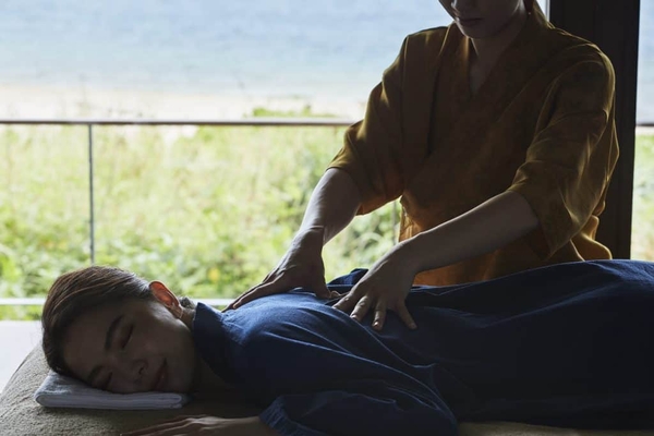 顔をのぞく全身のトリートメントを行う、「星のや沖縄 スパ」の代表的な身体のメニューです。寄せては返す静かな波のようなリズムで身体をほぐし、4種類から選べるブレンドオイルの香りが心地よい安らぎへ導きます。