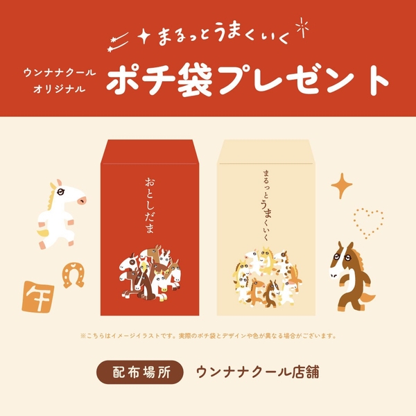 ウンナナクールの店舗にて、〈まるっとうまくいく〉対象商品をお買い上げのお客様に先着順でオリジナルポチ袋をプレゼントいたします。