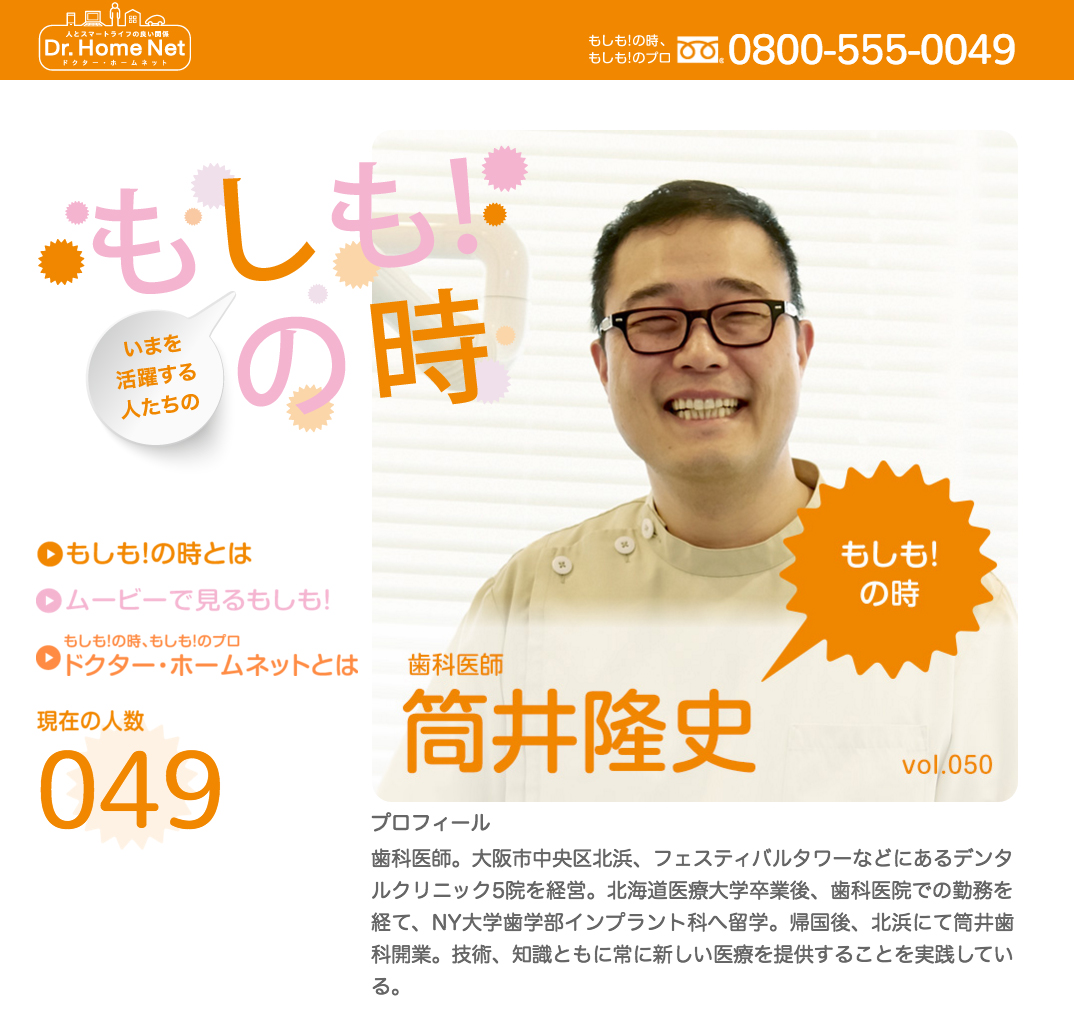 年間13万件以上のパソコン、スマホ、デジタル機器へのサポート実績をもつ日本PCサービス株式会社(本社:大阪府吹田市/代表取締役社長:家喜 信行/証券コード:6025)は、「ドクター・ホームネット」のスペシャルサイト< http://4900.tv/ >にて、デンタルクリニック5院を経営されている歯科医師 筒井理事長の「もしも!の時」を新たに公開いたしました。