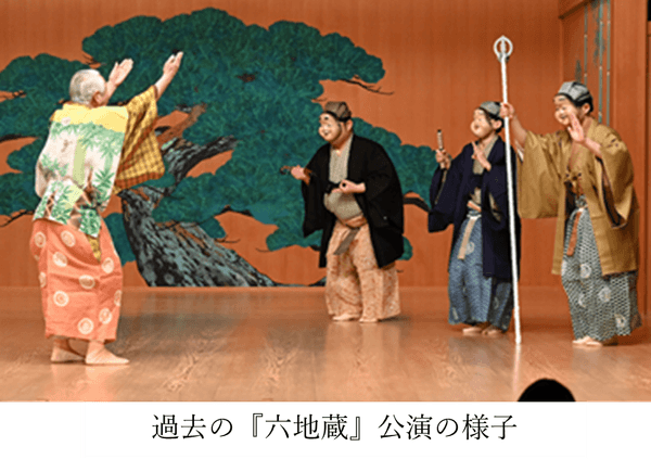 芝庭を舞台に見立て、狂言『六地蔵』の公演を開催。