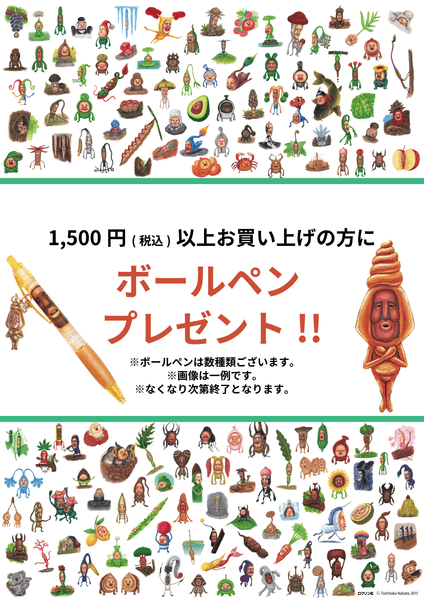 さらに、期間中にPOPUPショップでこびとづかん関連商品を1500円(税込)以上お買い上げの方にお好きなボールペンを1本プレゼントいたします。