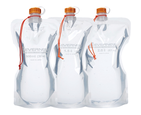 山やハイキング、または災害時等にも、水を運ぶために必要な道具が「ウォーターキャリー」です。サイズは扱い易い3サイズをラインアップ。900mlはバックパックのサイドポケットやフロントネットに。1.5Lは何かと使いやすい絶妙なサイズで、長期山行の予備用としての携行に。2Lはテント泊山行のスタンダードサイズで、朝まで余裕なサイズ感がおすすめです。