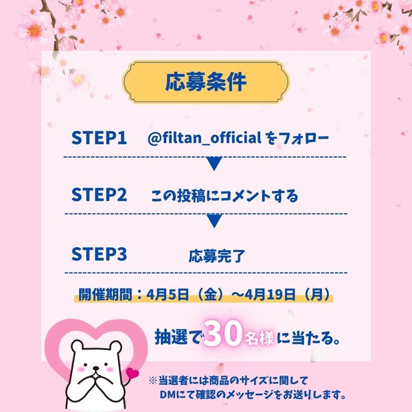 当選者の発表は、Instagramのダイレクトメッセージでのご連絡をもってかえさせていただきます。