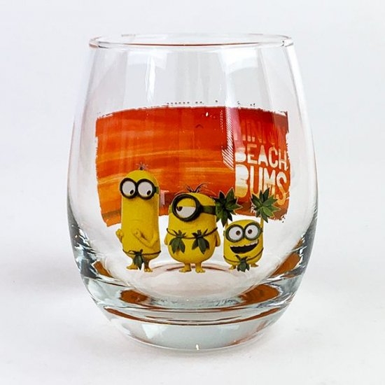 サンセットを背景に集まっているケビンたち。とってもかわいいデザインのグラスで、曲線を描いたフォルムもきれいです。