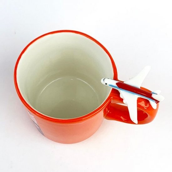 オレンジカラーのかわいいカップの持ち手には、飛行機のフィギュアが付いています。フィギュア付きのマグカップなんて、珍しいですよね♪