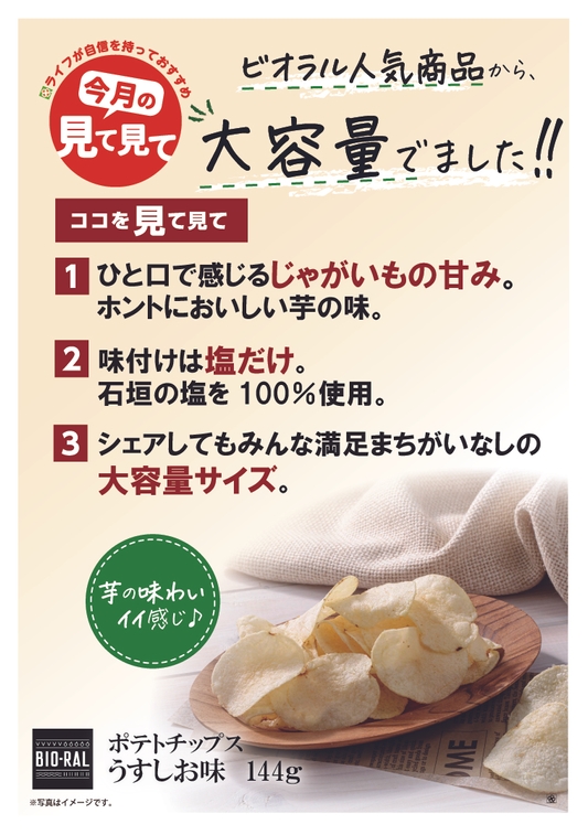 「BIO-RAL ポテトチップス うすしお味 144g」は、ライフ全304店舗にて期間限定で販売しております。