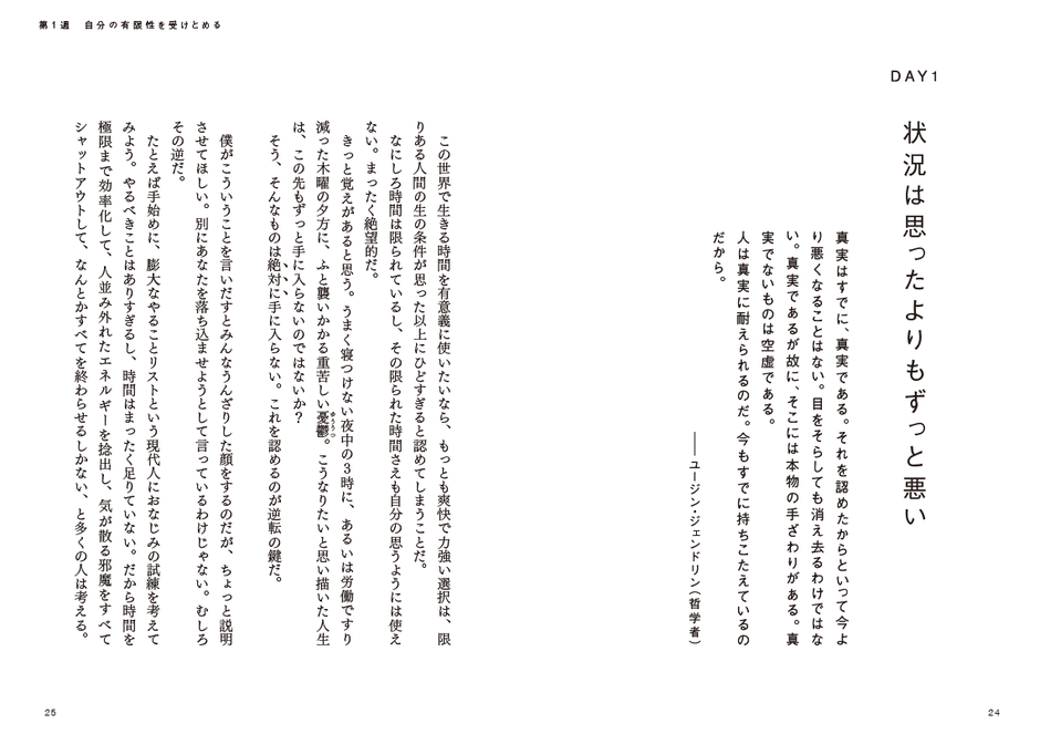 うまくやれば、解決策さえ見つければ、人生が順調に進みはじめる―そんな思いがいつも頭の隅にあった。メールの未読が溜まらない仕組みを手に入れれば、恋愛でみじめな思いをしない方法がわかれば、きっと今とは違う自分になれる。そのとき初めて、長い準備期間が終わり、本当の人生が幕を開けるのだ。